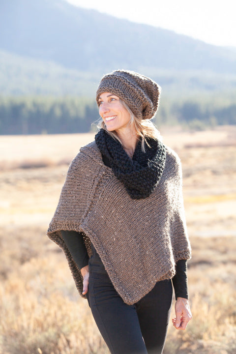 Black Infinity Scarf shown with Mushroom Slouch Hat , Mushroom Poncho and Striped Purse