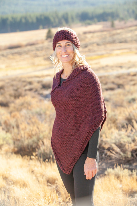 Wine headband shown with Wind Poncho
