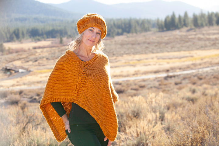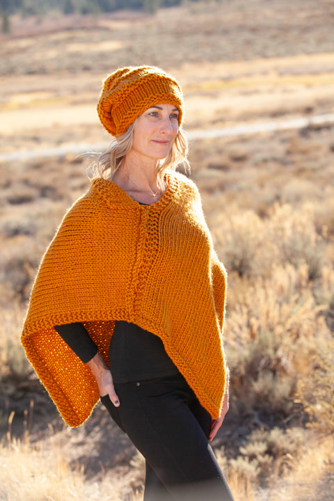 Turmeric Poncho shown with Turmeric Slouch Hat