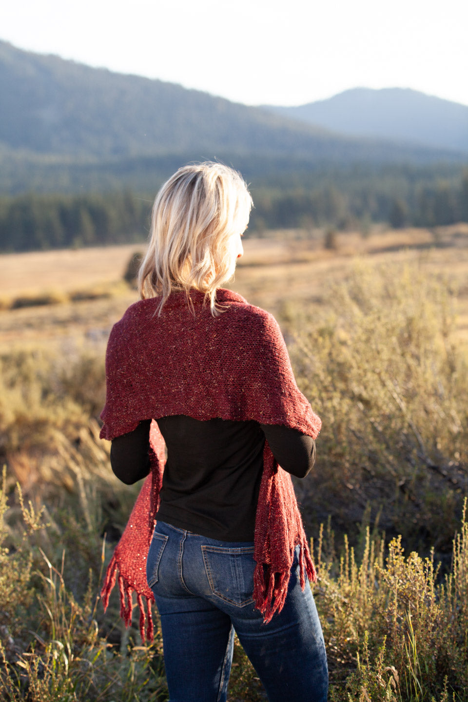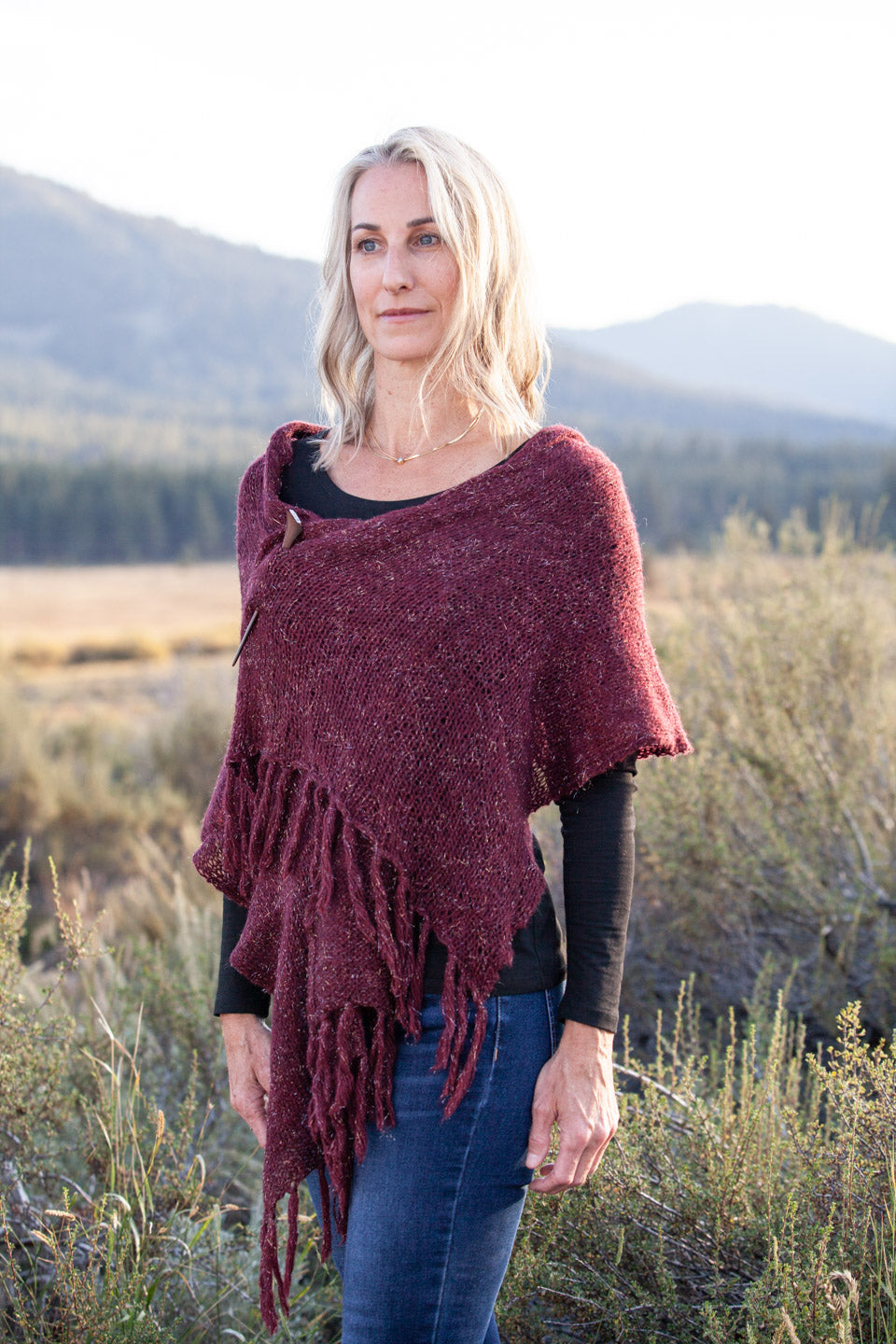 This Shawl is very versatile. Wonderful on a trip.