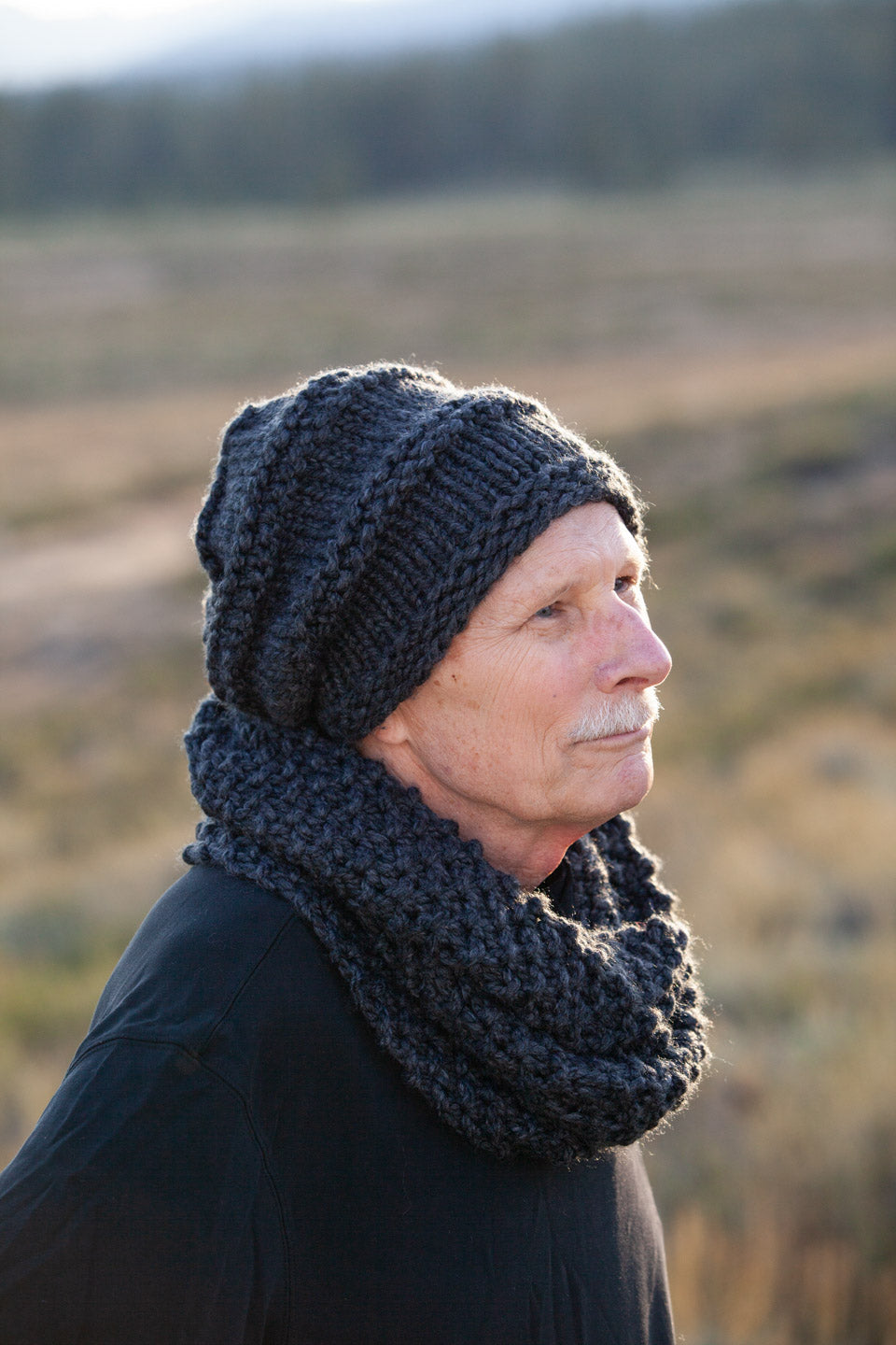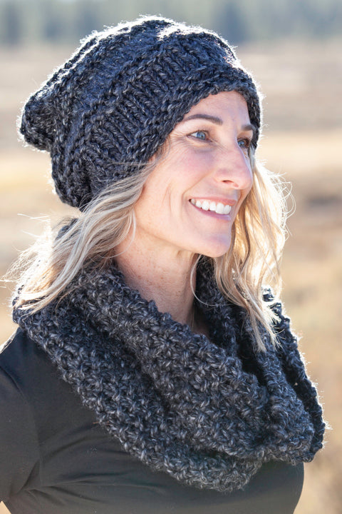 Charcoal Slouch Hat shown with Charcoal Infinity Scarf.